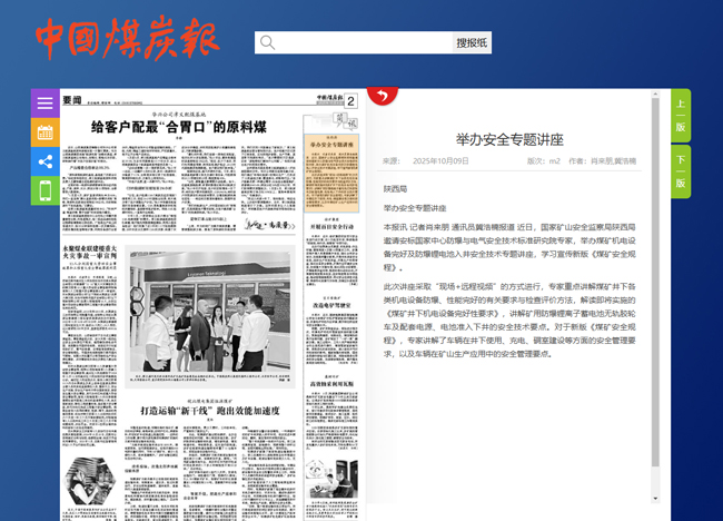 本报讯 记者肖来朋 通讯员冀浩楠报道 近日,国家矿山安全监察局陕西局邀请安标国家中心防爆与电气安全技术标准研究院专家,举办煤矿机电设备完好及防爆锂电池入井安全技术专题讲座,学习宣传新版《煤矿安全规程》。
