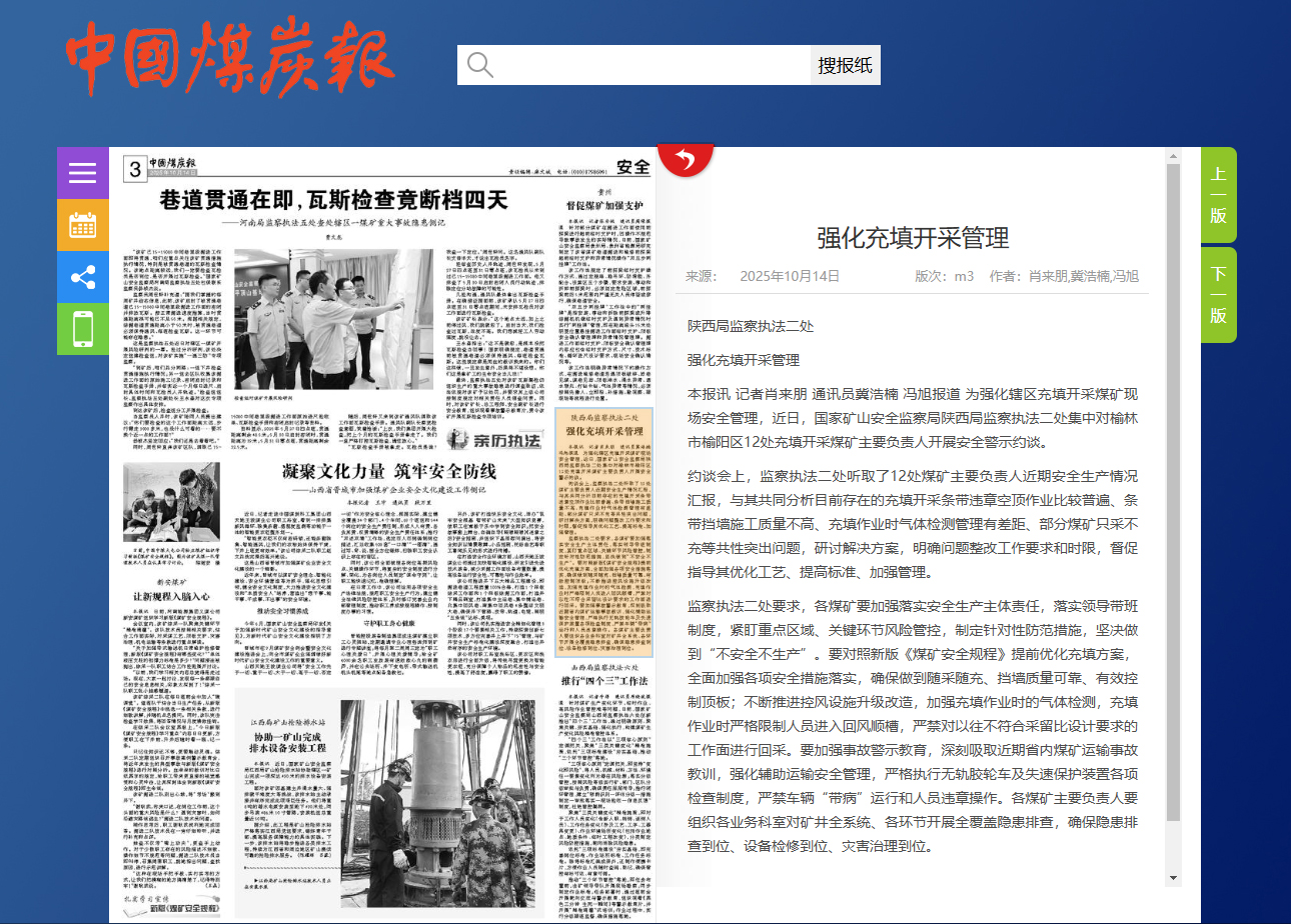 国家矿山安全监察局陕西局监察执法二处强化充填开采管理
