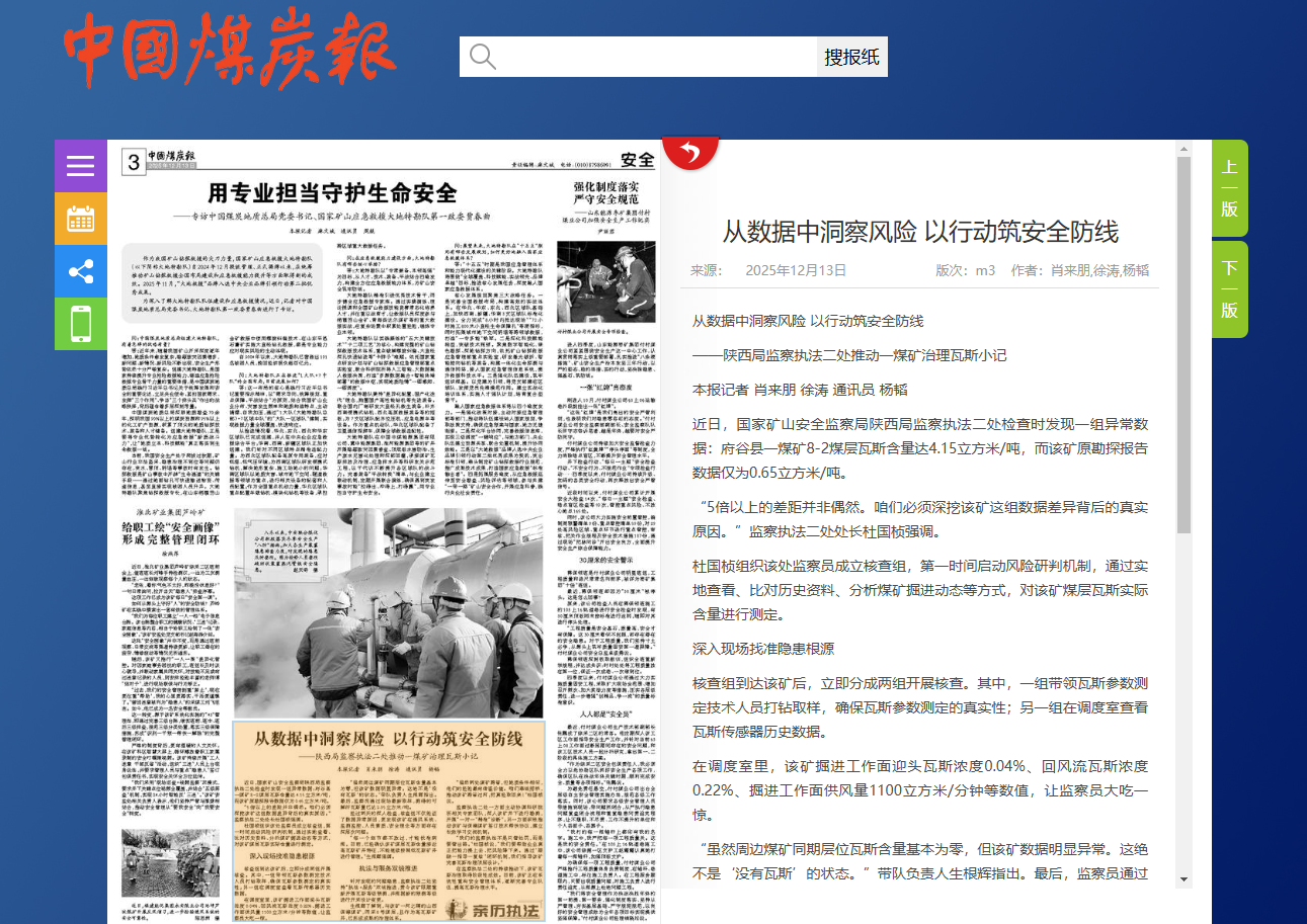 “我们的监察执法不是只管处罚,而是要管出路。”杜国桢说,“我们要帮助企业真正把能力提上去、把风险降下来。通过‘跟踪—指导—复核’闭环机制,我们指导该矿完善瓦斯治理顶层设计。”